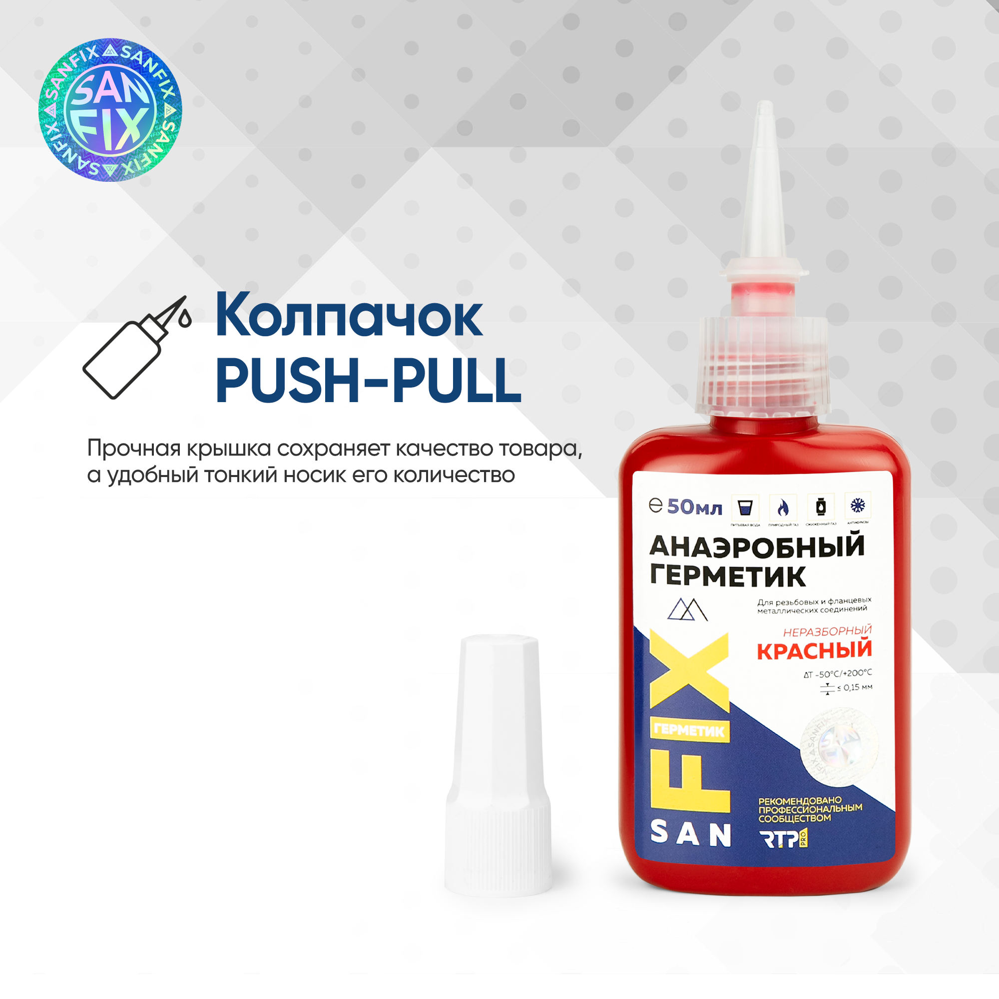 Герметик анаэробный неразборный SANFIX, низко-средней вязкости, высокой прочности, 50 мл., блистер красный