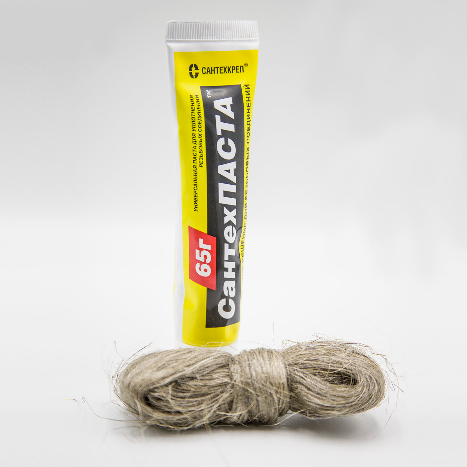 Купить Комплект монтажный Сантехкреп. Набор паста уплотнительная Сантехпаста 65 гр. + лен 14 гр