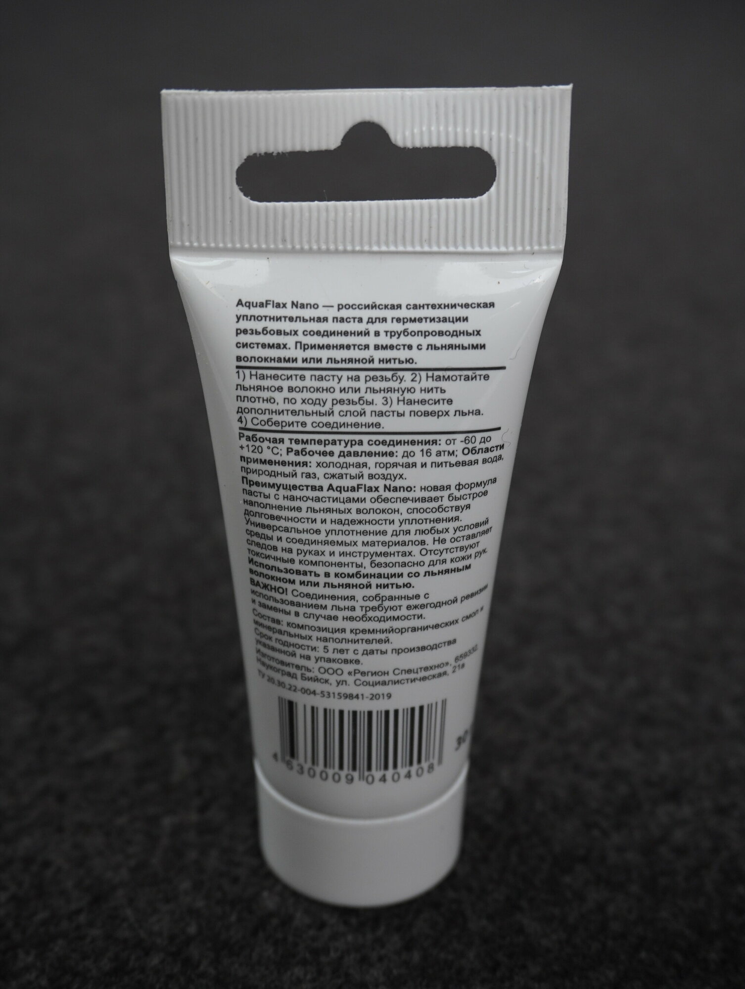 | Дополнительная информация | Паста, Aquaflax nano, Паста для герметизации резьбы, 80 г |