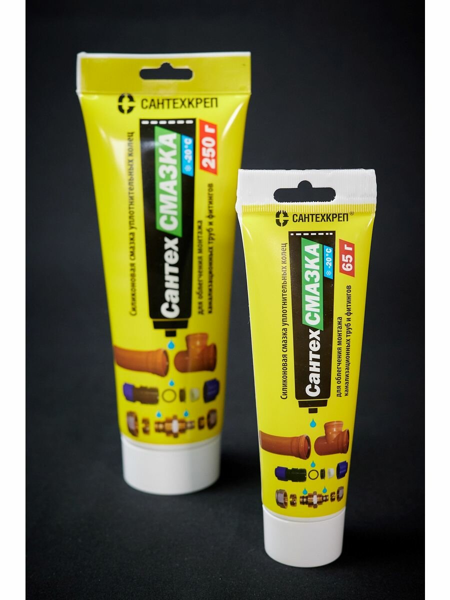 Силиконовая смазка для уплотнительных колец, канализационных труб и фитингов "сантехсмазка" 65 гр. в тубе Сантехкреп