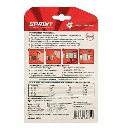 Сантехническая уплотнительная нить SPRINT 50 м, в блистере интересное: