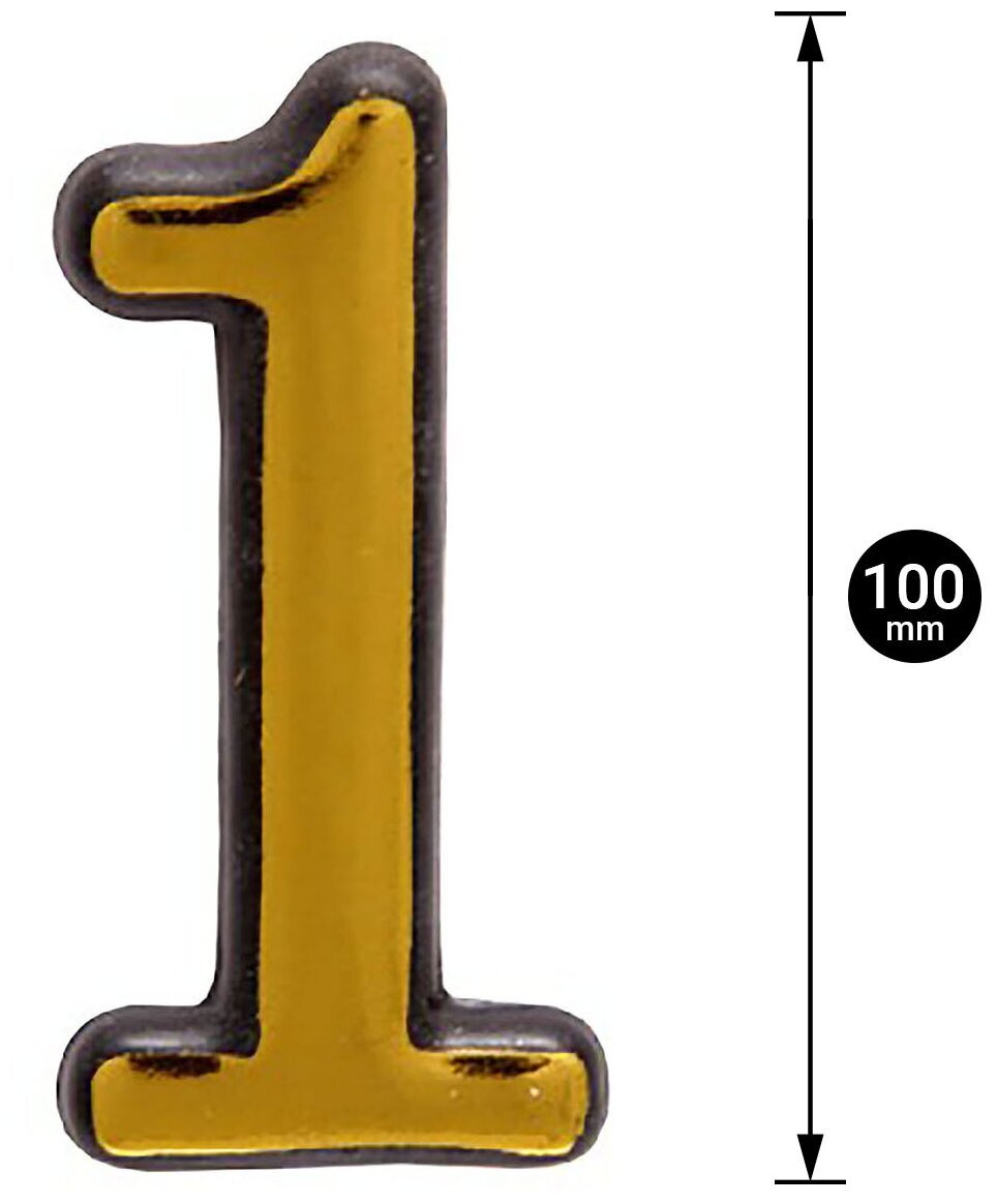 Цифра дверная Аллюр 1, самоклеящаяся, пластик, цвет золотой, длина 5 см, ширина 30мм