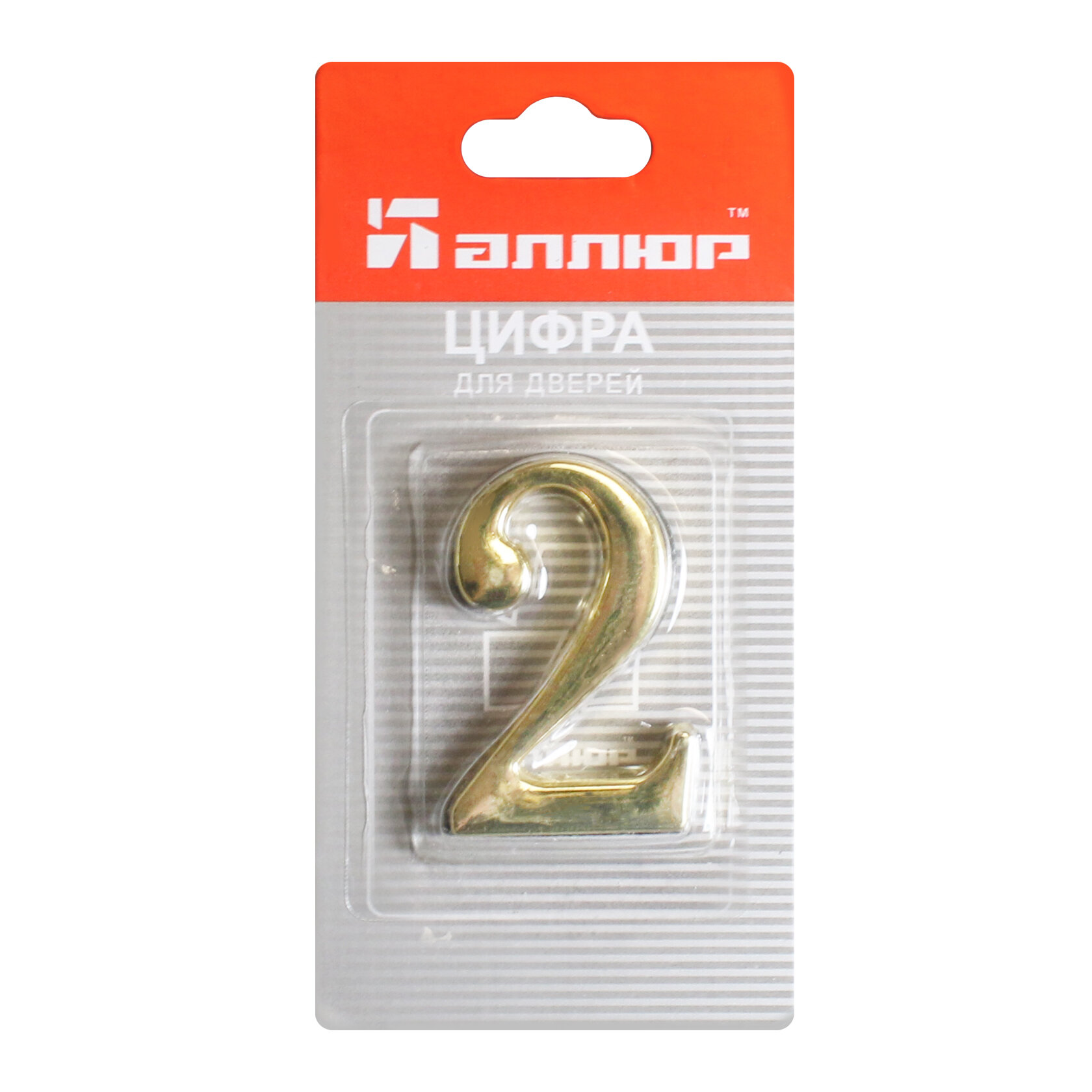 "Цифра дверная аллюр ""2"" на клеевой основе золото (600,20) блистер (арт. 191698)"