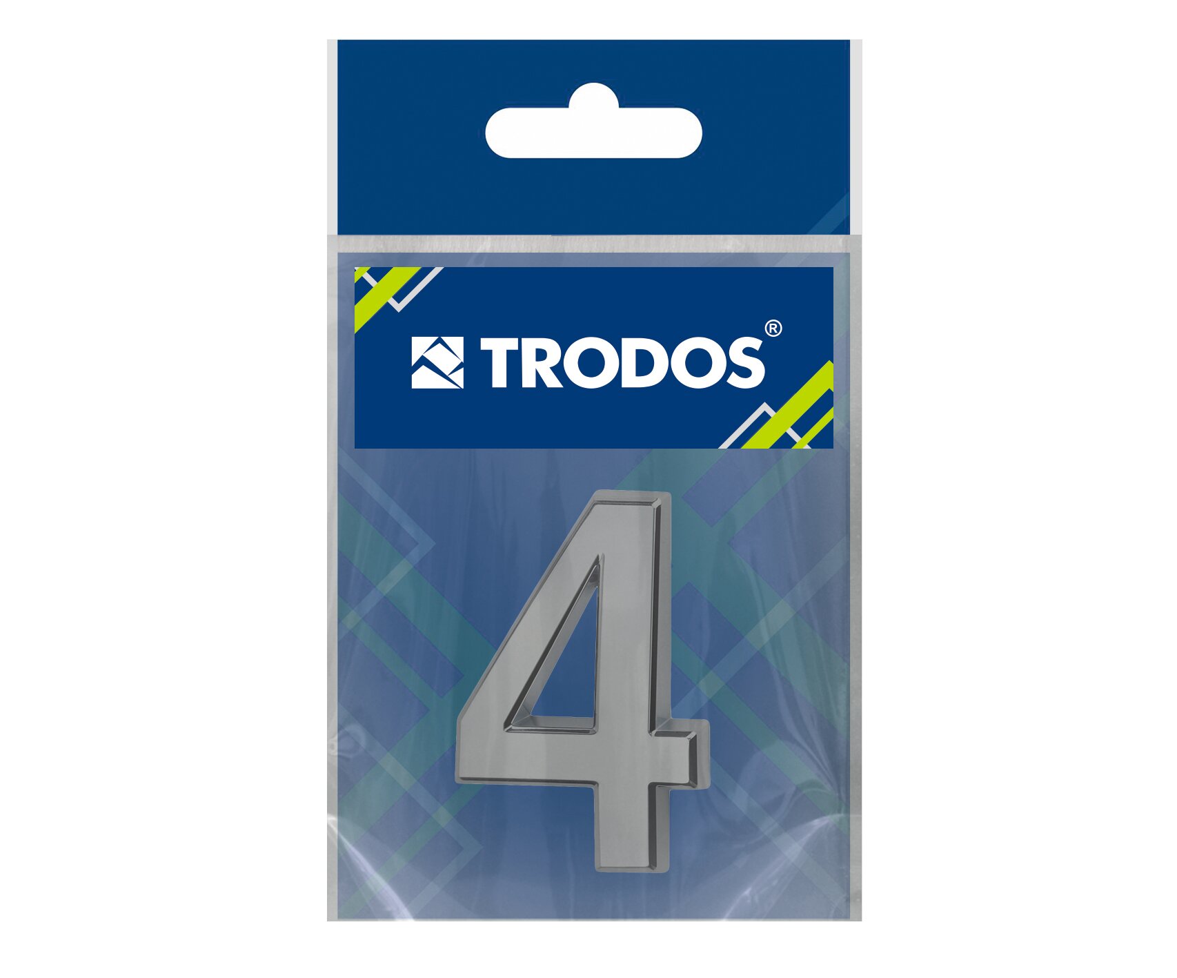Номер дверной самоклеющийся, цифра на входную дверь "4" Trodos , модерн, хром