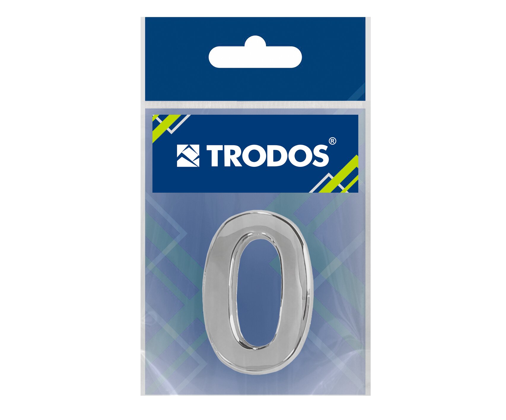 Номер дверной самоклеющийся, цифра на входную дверь "0" Trodos , модерн, хром