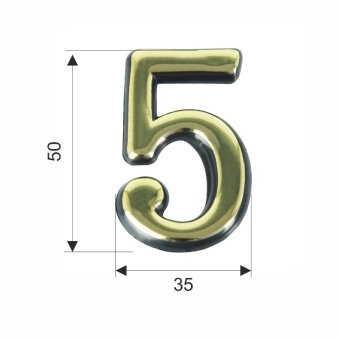 Купить Номер дверной самоклеющийся (цифра на входную дверь), цифра 5, золото, пластик TRODOS