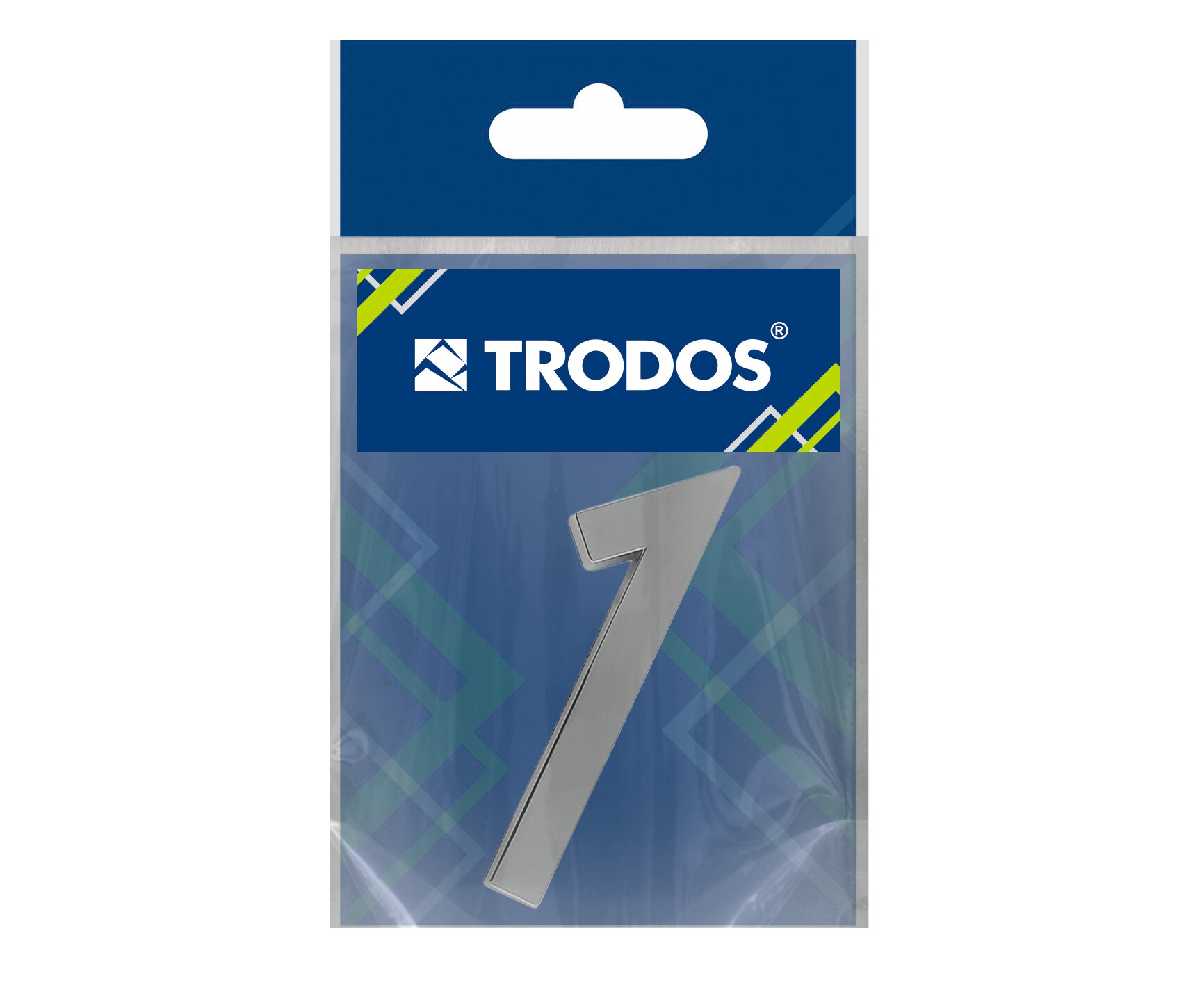 Номер дверной самоклеющийся, цифра на входную дверь "7" Trodos , классика, хром