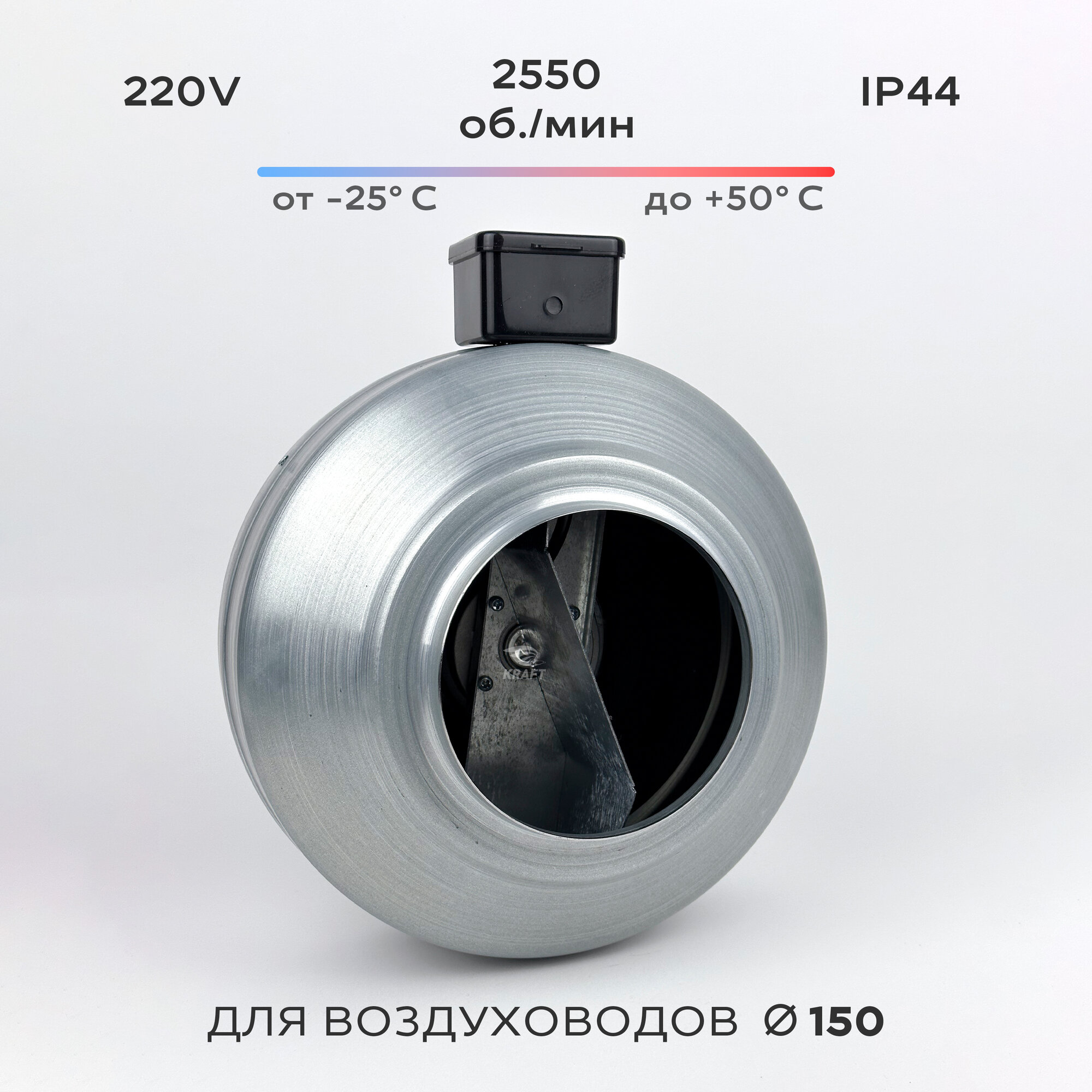 Купить Вентилятор канальный круглый ВКК-150 в металлическом корпусе, 220В, 780 м3/час, 350 Па, 115 Вт, для круглых воздуховодов диаметром 150 мм, IP 44
