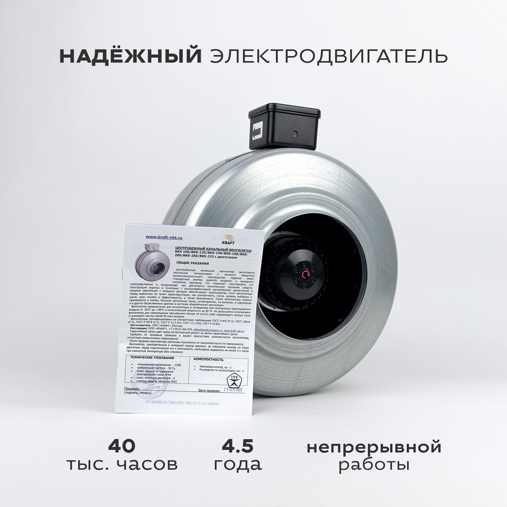 Вентилятор канальный круглый ВКК-200 в металлическом корпусе, 220В, 1000 м3/час, 410 Па, 150 Вт, для круглых воздуховодов диаметром 200 мм, IP 44
