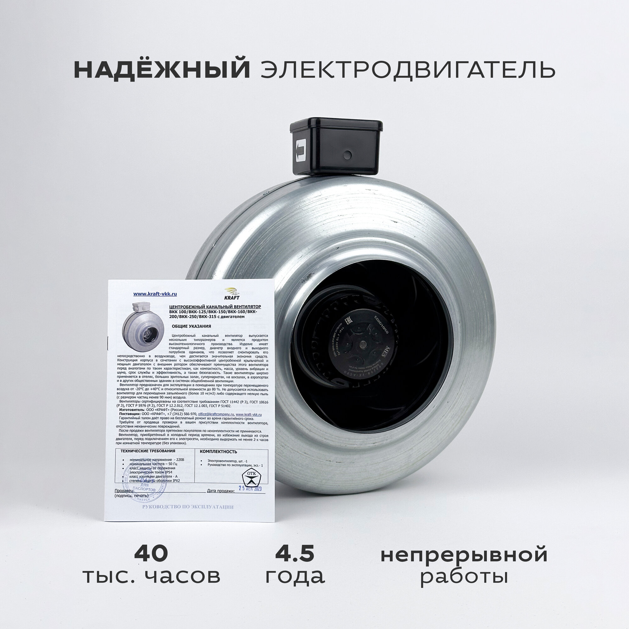Вентилятор канальный круглый ВКК-315 в металлическом корпусе, 220В, 1870 м3/час, 550 Па, 270 Вт, для круглых воздуховодов диаметром 315 мм, IP 44