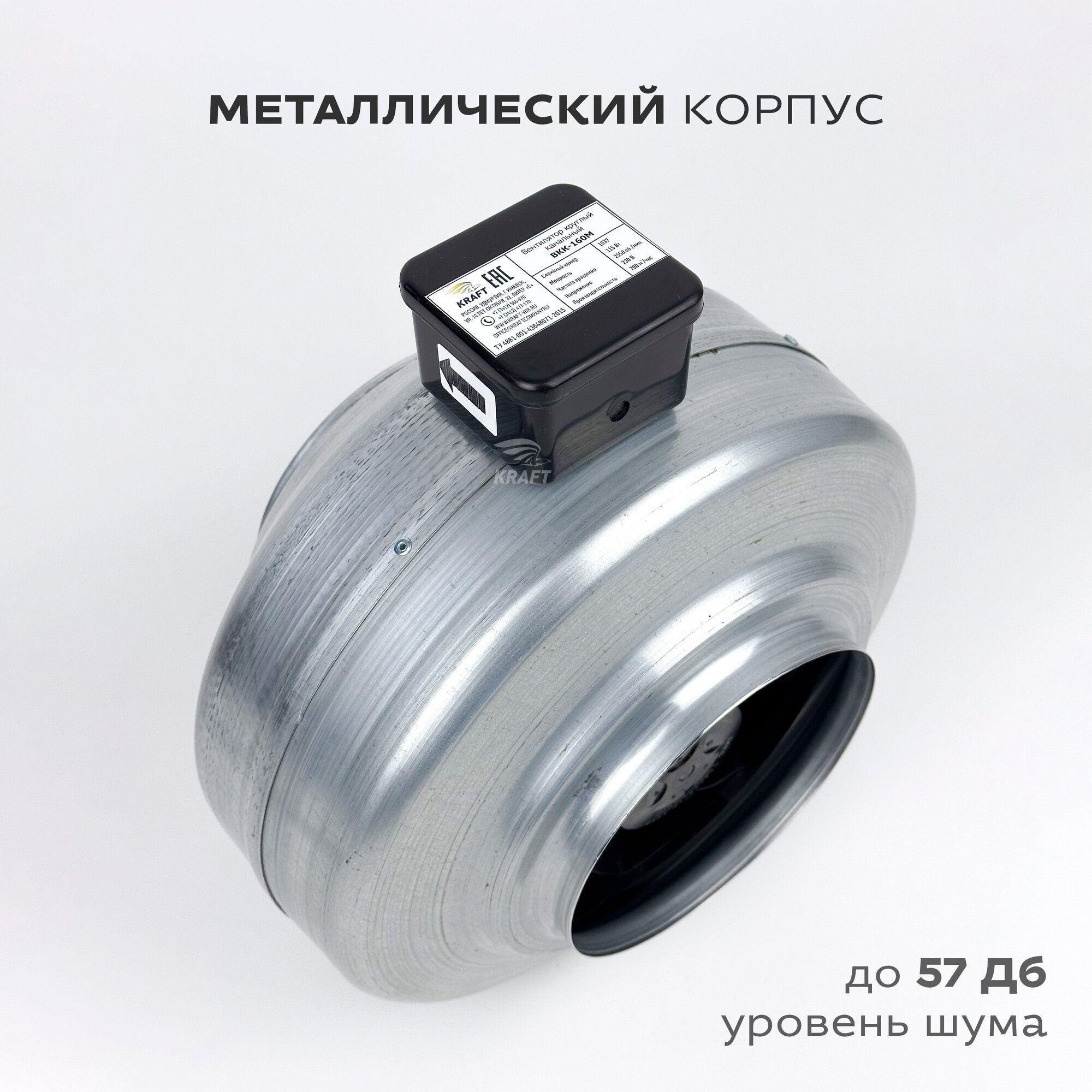Вентилятор канальный круглый ВКК-150 в металлическом корпусе, 220В, 780 м3/час, 350 Па, 115 Вт, для круглых воздуховодов диаметром 150 мм, IP 44