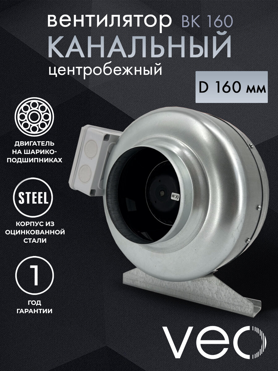 Вентилятор канальный VEO ВК 160, центробежный, D 160 мм, вытяжной, приточный интересное: