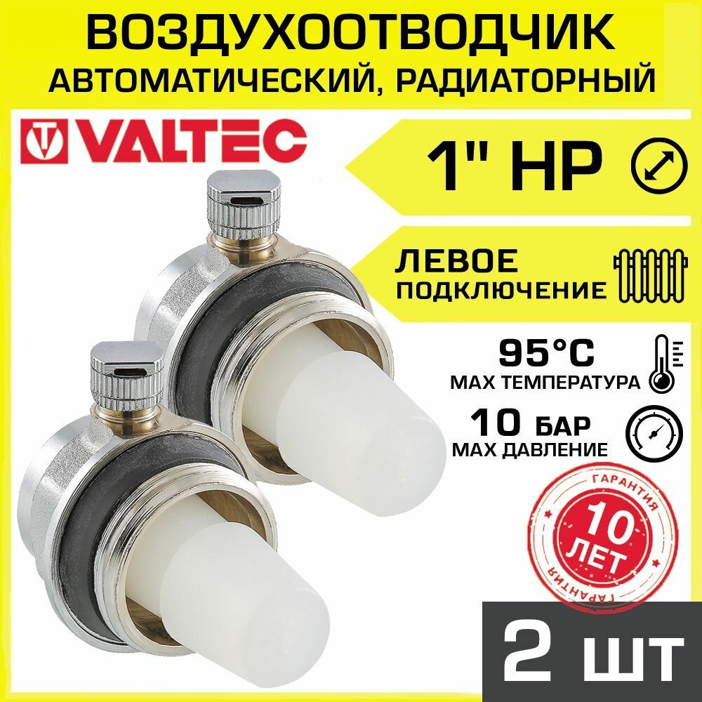 Воздухоотводчик автоматический 1" нар.р. 2 шт (левый) VALTEC для радиатора отопления / Кран Маевского на отопительную батарею (сбросник воздуха) интересное: