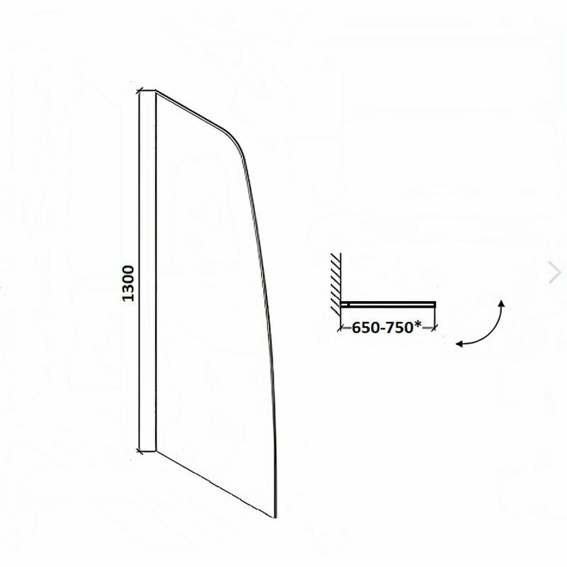 Шторка на ванну Parly 75x130 F04B профиль Черный стекло прозрачное интересное: