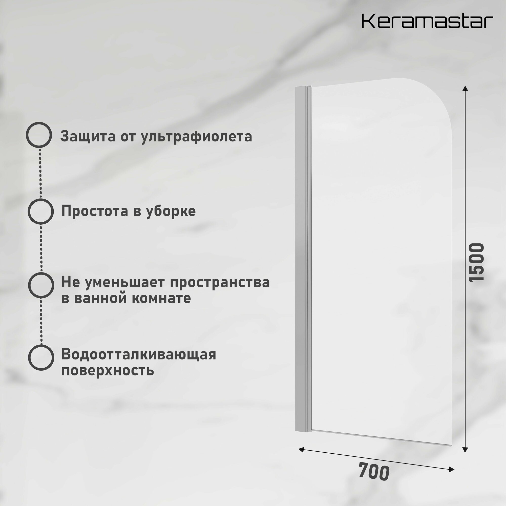 Шторка для ванны прозрачная Keramastar Supra KR065011 интересное: