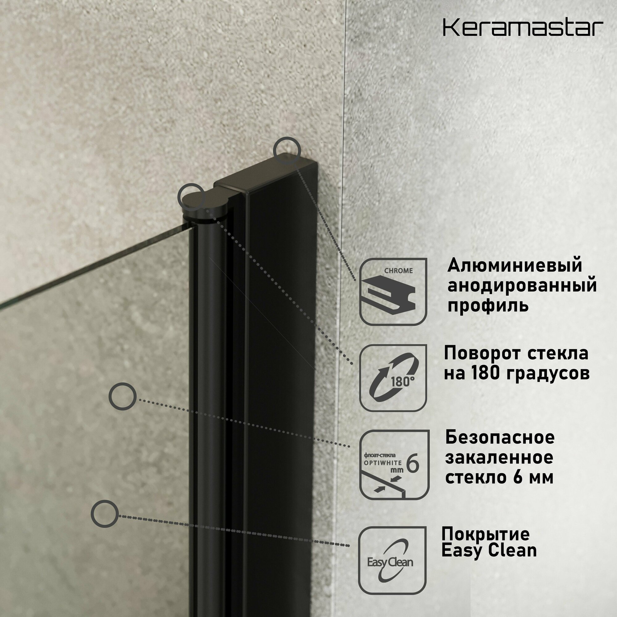 Шторка для ванны прозрачная Keramastar Supra Night KR065062 (140х80) профиль черный, стекло 6мм
