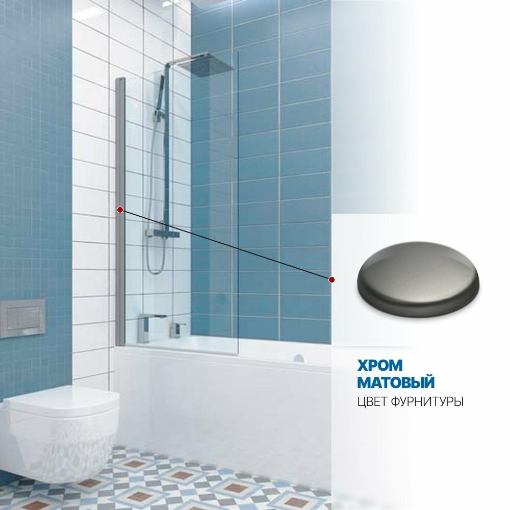 Шторка на ванну GWMPKB020P601N 67x149 см, цвет фурнитуры хром матовый, цвет стекла матовый, стекло закаленное 6 мм