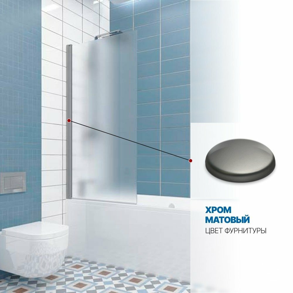 Шторка на ванну GWMPKB020P601 80x150 см, цвет фурнитуры хром матовый, цвет стекла матовый, стекло закаленное 6 мм, открывание двери левое / правое