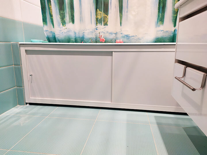 Экран под ванну Акварель 145х56см белый, с раздвижными дверцами из композита, рама из алюминиевого профиля. 3 дверцы. интересное: