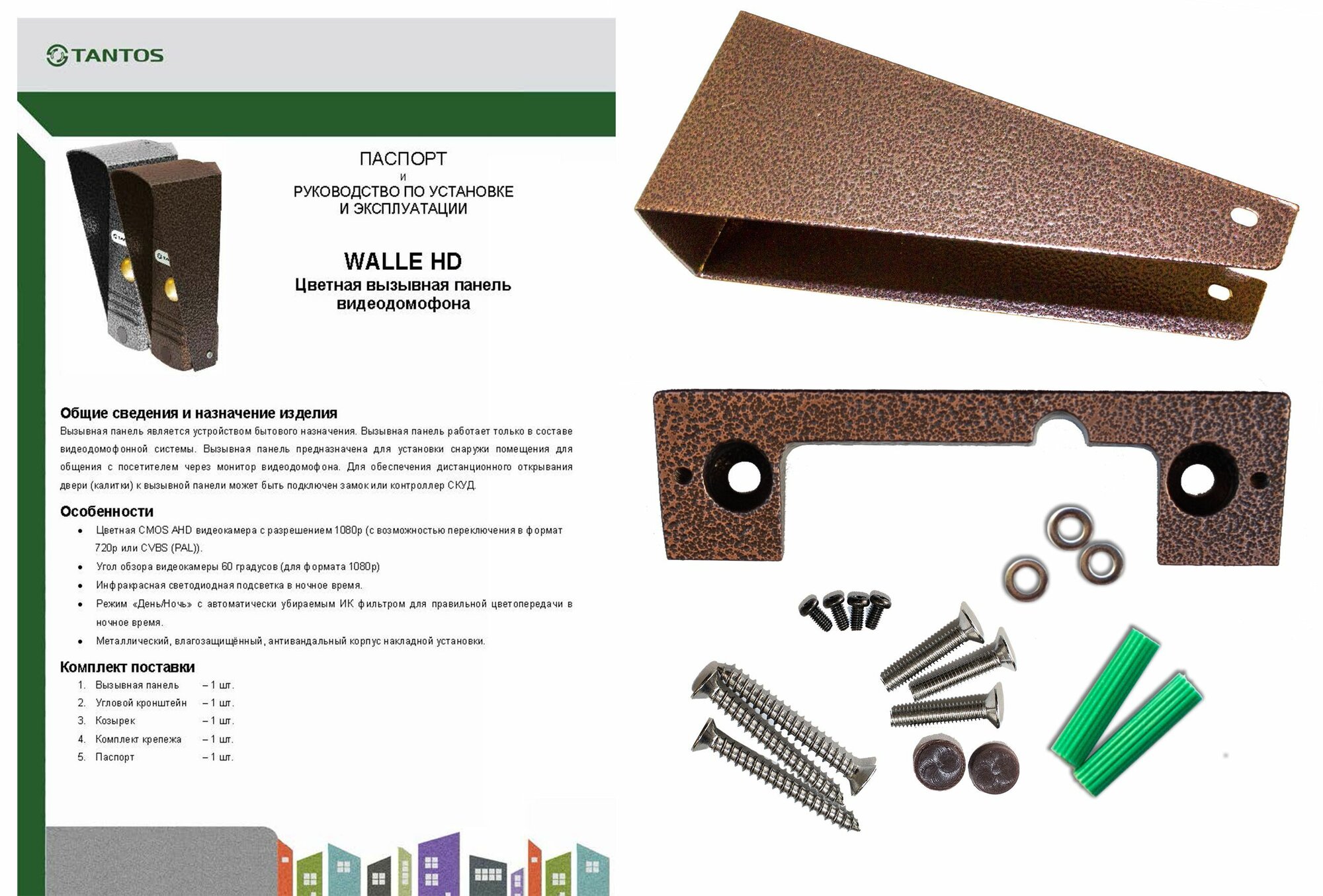 Вызывная универсальная (AHD1080p/720p/CVBS) видеопанель Tantos WALLE HD (медь) антивандальная с переключением сигналов интересное: