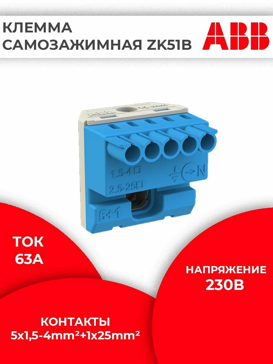 Клеммник N("ноль") ABB ZK51B самозажимной N5x4+1x25мм2 1SPE007715F9702 интересное:
