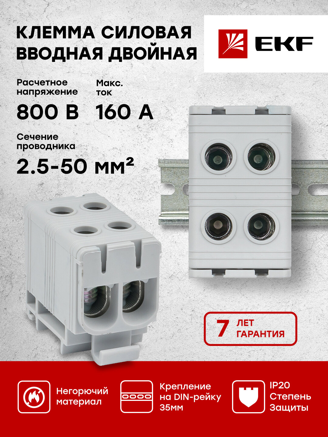 Клемма силовая вводная двойная КСВ 16-50кв.мм сер. EKF plc-kvs2-16-50-grey интересное: