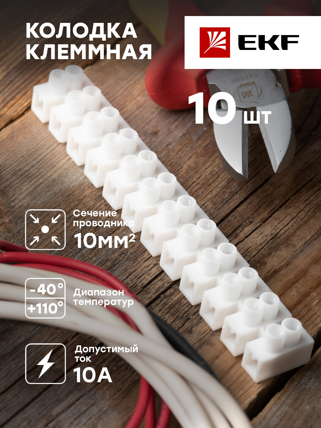 Колодка клеммная полистрол белая 1,5-6(10) мм2 10А 12 секций EKF интересное: