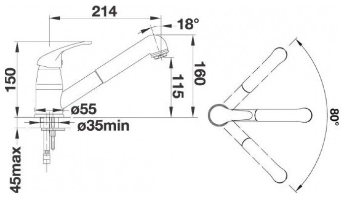 | Длина излива | 214 мм |