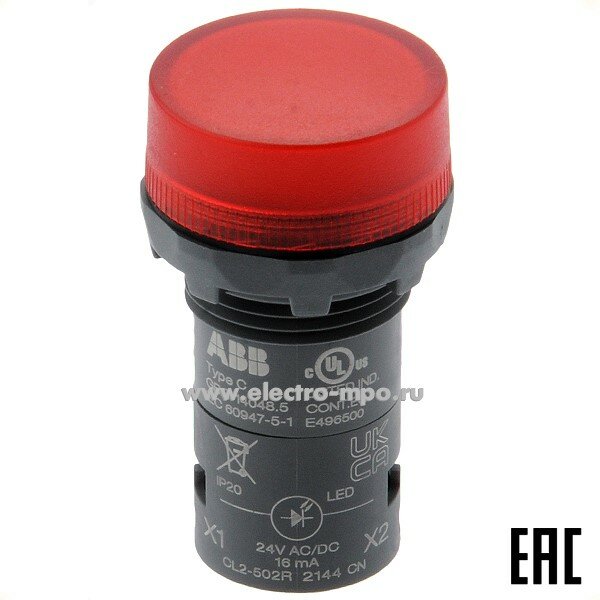 Лампа CL2-523R красная со встроенным светодиодом 230В AC, ABB 1SFA619403R5231 (1 шт.)