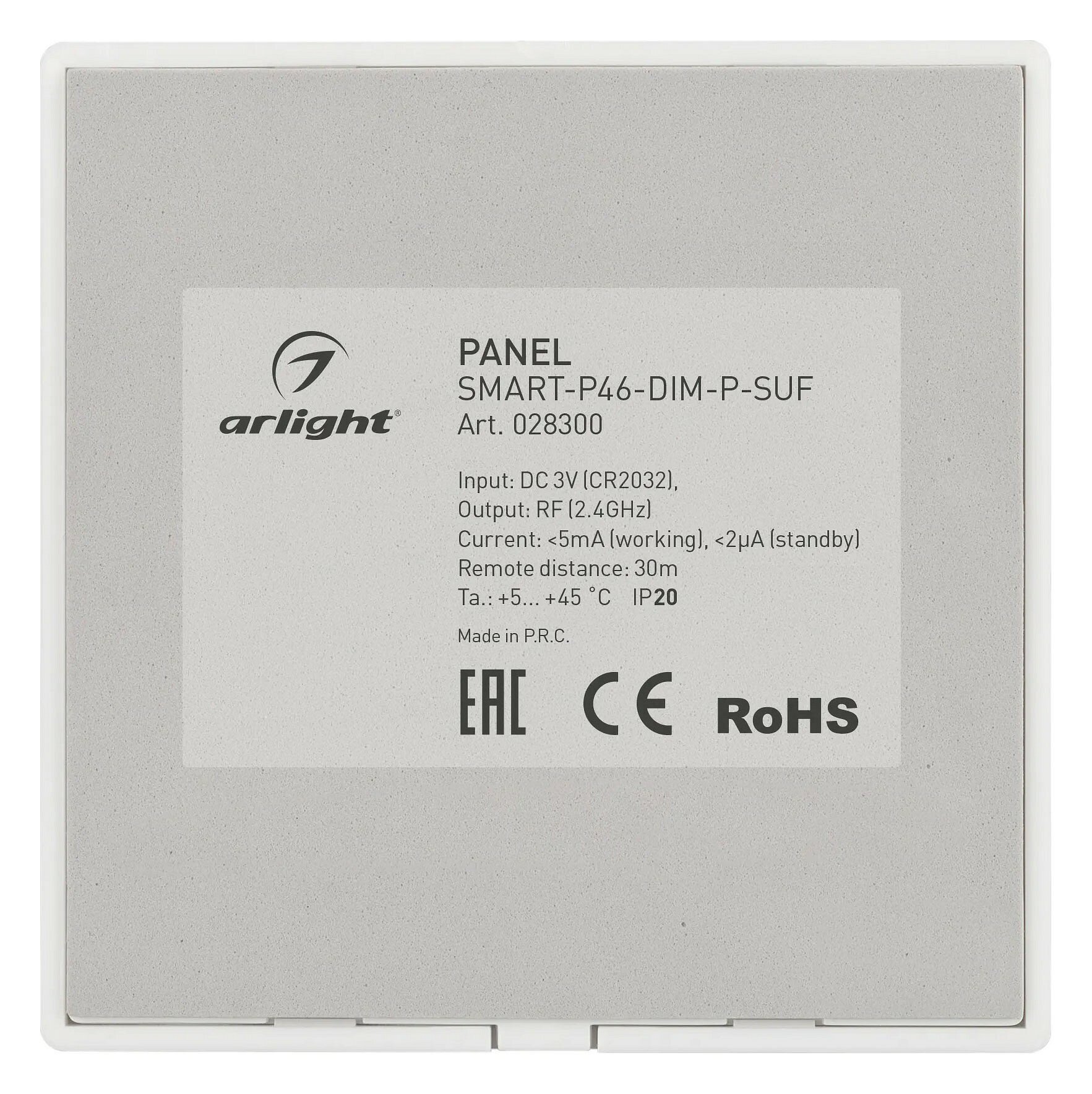 028300 Панель SMART-P46-DIM-P-SUF (3V, 1 зона, Knob, 2.4G) (Arlight, Пластик)