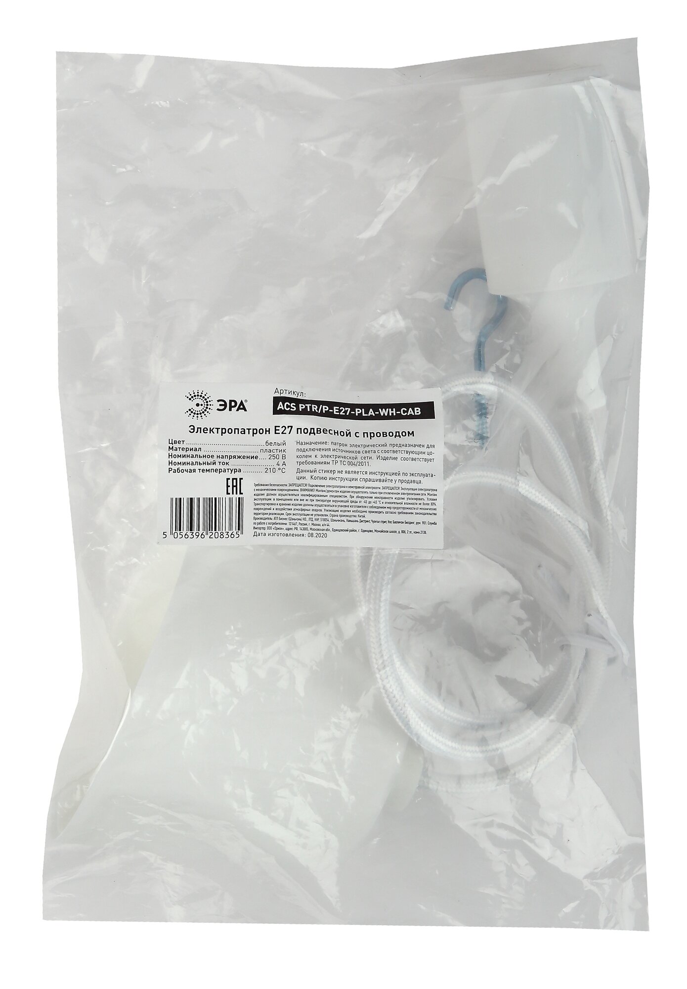 Патрон пластиковый Е27 с подвесом бел. Эра Б0048038 интересное: