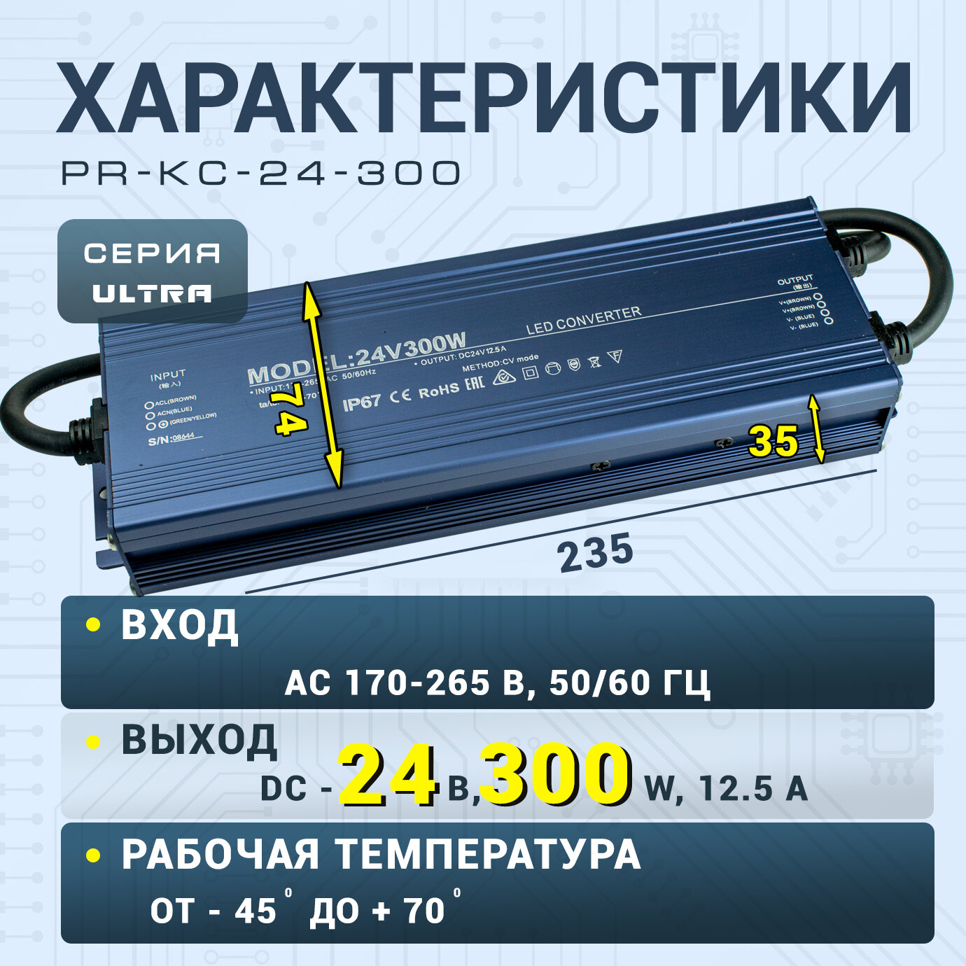 Блок питания влагозащищенный Led-Book PWC 24 Вольт 300 Ватт интересное: