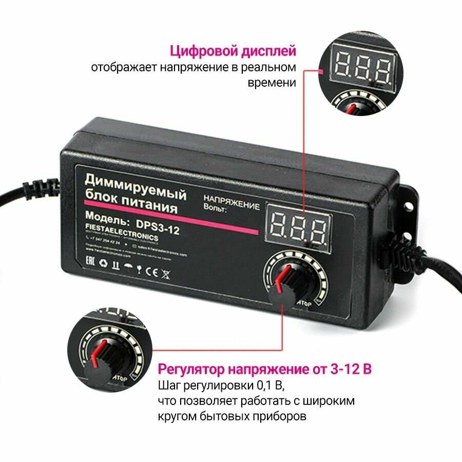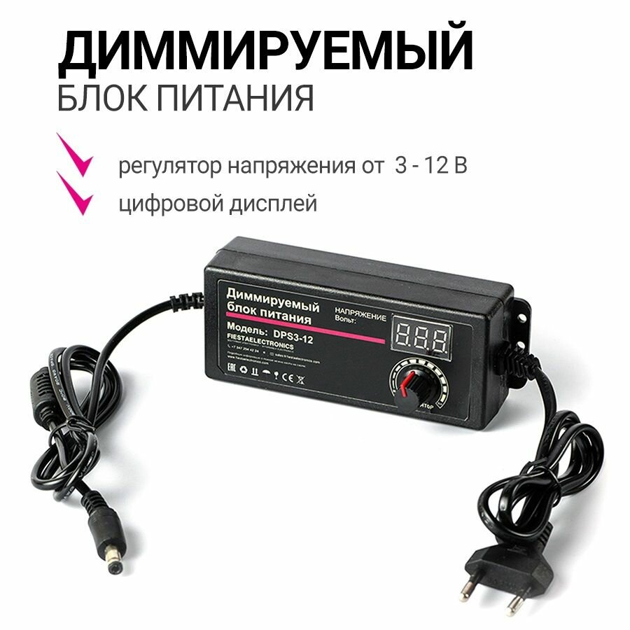 Сетевой блок питания диммируемый Sila DPS3-12L (3А с вольтметром) подходит к Сорбер Дистив светобоксы