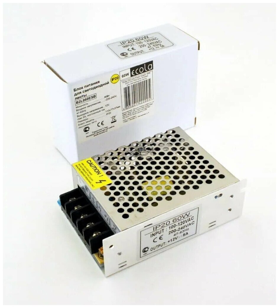 Блок питания Ecola LED strip Power Supply 60W 220V-12V IP20 блок питания для светодиодной ленты B2L060ESB интересное: