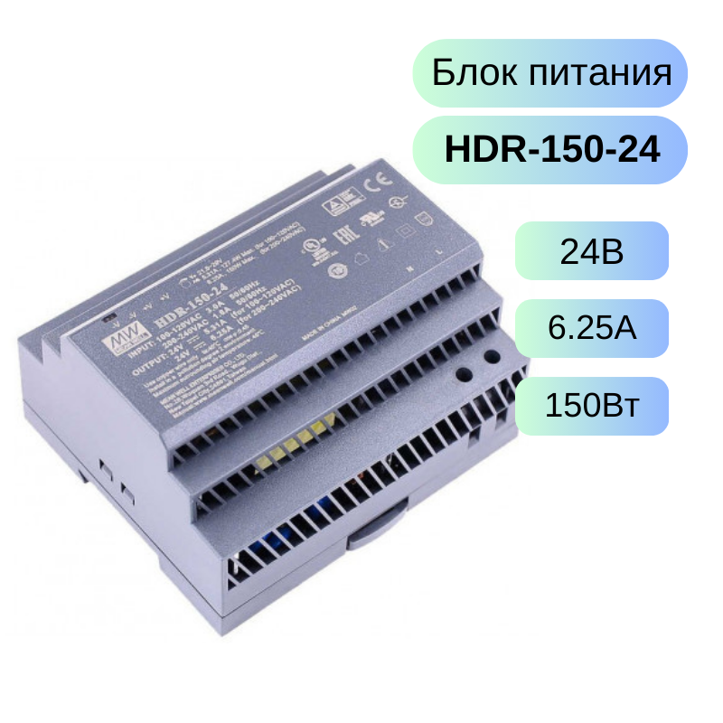 HDR-150-24 MEAN WELL Источник питания AC-DC, 24В, 6.25А, 150Вт интересное: