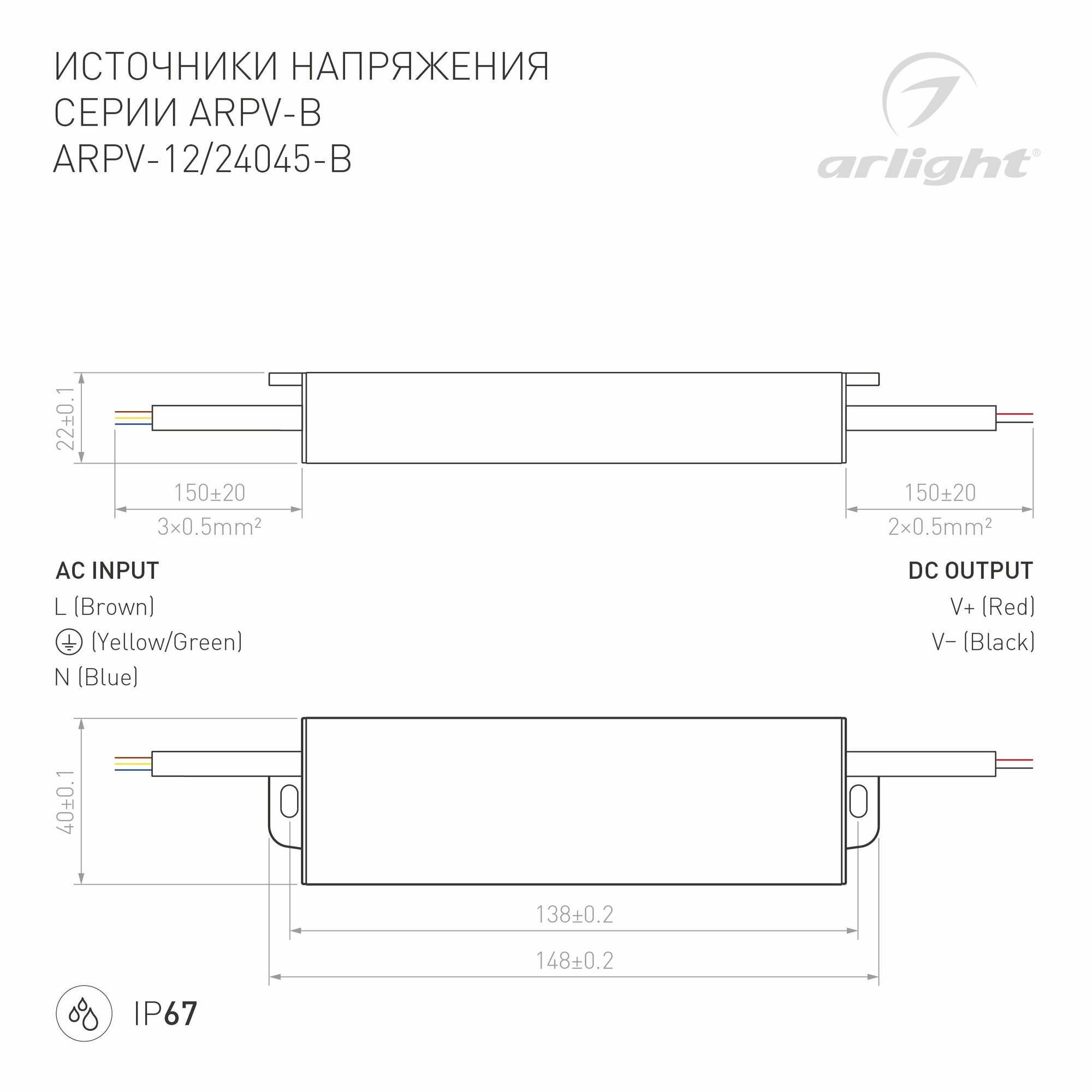 Блок питания ARPV-12045-B (12V, 3.8A, 45W) (Arlight, IP67 Металл, 3 года) интересное: