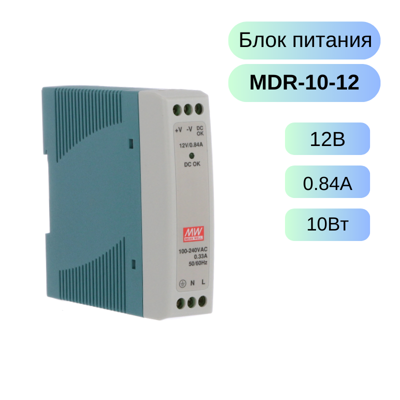 MDR-10-12 MEAN WELL Блок питания, 12В, 0.84А,10Вт