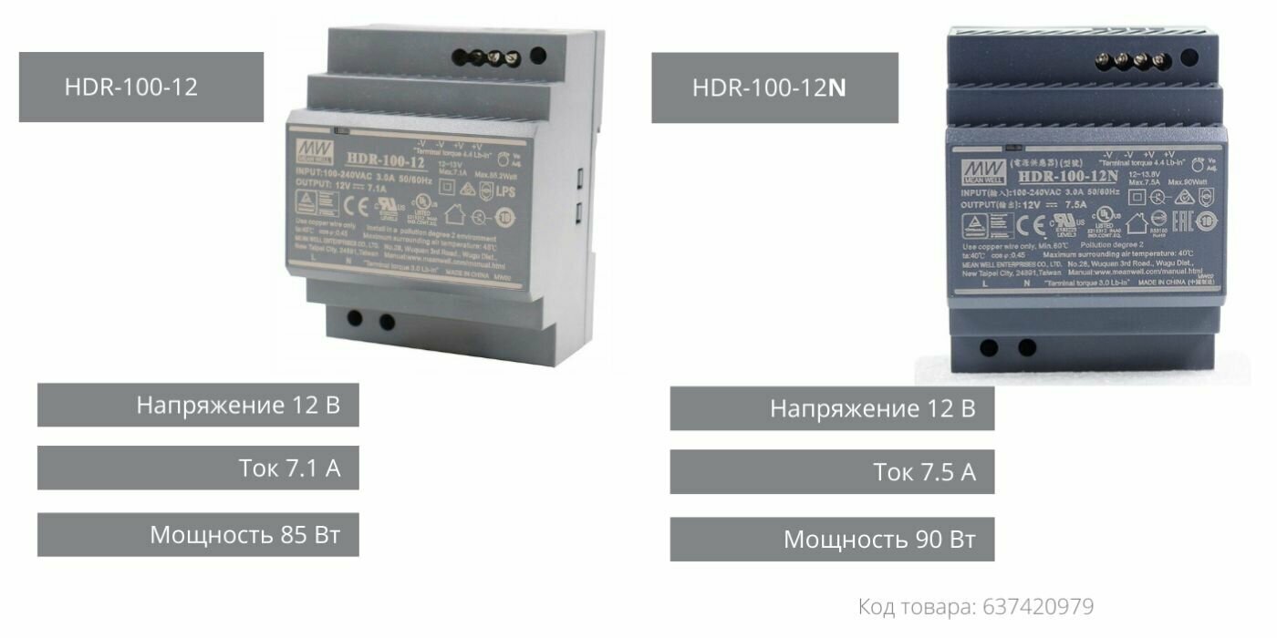 СохранитьИтак, мы решили сравнить, где же дешевле купить HDR-100-12 MEAN WELL Источник питания AC-DC, 12В, 7.1А, 85Вт, для этого мы взяли Яндекс Маркет и 2 других маркетплейса е-Каталог и Авито, результаты сравнения цен на HDR-100-12 MEAN WELL Источник питания AC-DC, 12В, 7.1А, 85Вт ниже.