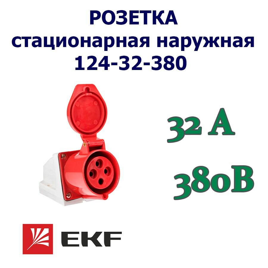 Розетка стационарная наружная 124 3Р-РЕ 32А 380В IP44 EKF интересное: