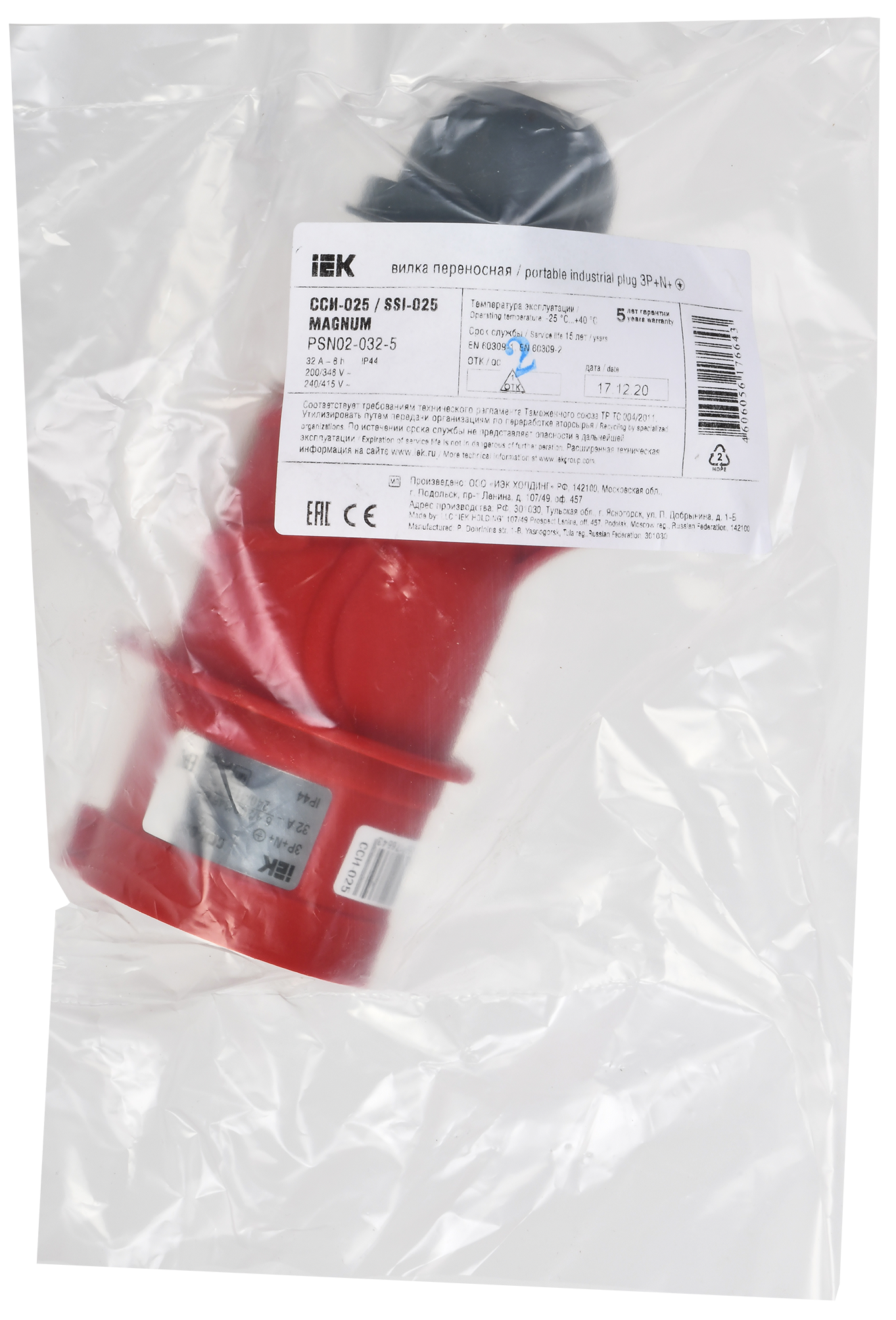 IEK ССИ-025 Вилка переносная 3P+PE+N 32А-6ч/200/346-240/415В-IP44-MAGNUM
