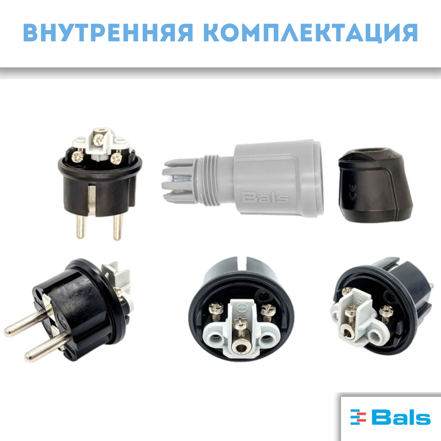 Вилка Bals кабельная SCHUKO 16A, 3P(2P+E), 250V, IP44, серый интересное:
