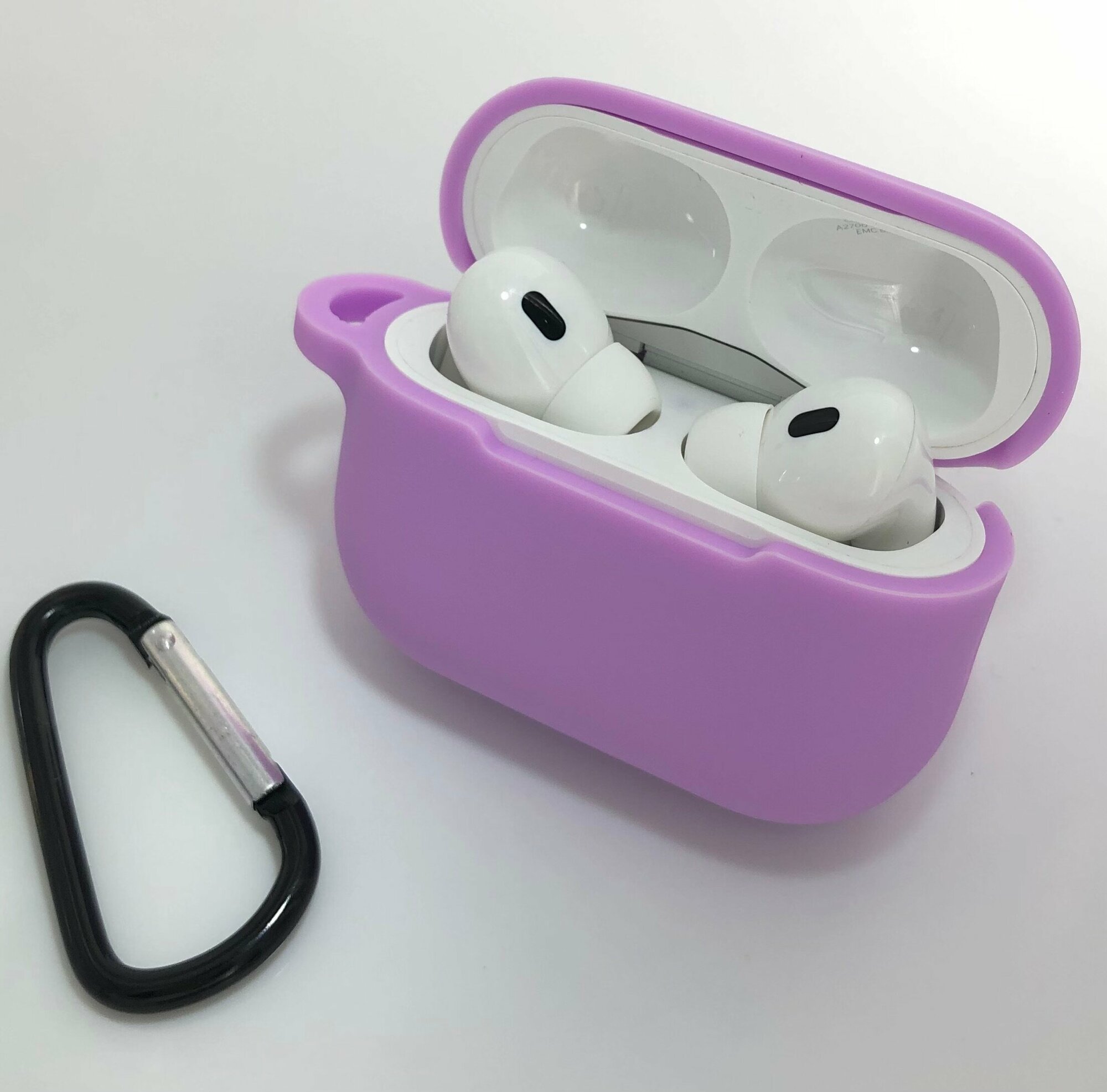 Чехол для AirPods Pro 2 прорезиненный soft touch c карабином пурпурный интересное: