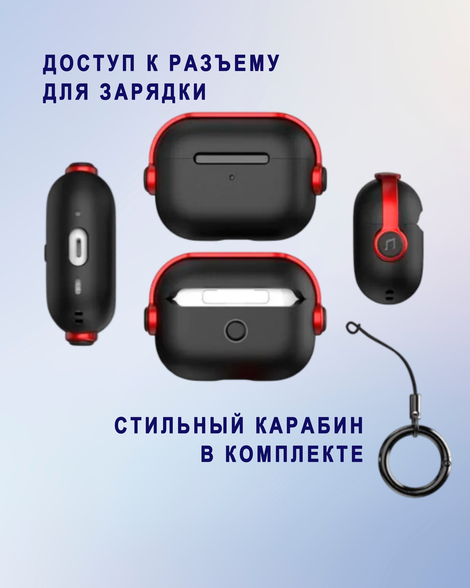 Чехол для AirPods Pro 2 / Новый дизайн, силиконовый чехол для Аирподс Про 2, Цвет: Черный + красный