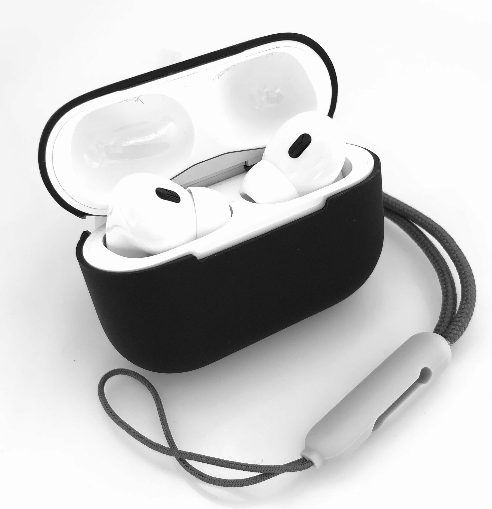 Купить Силиконовый чехол для AirPods Pro 2 с ремешком ультратонкий black