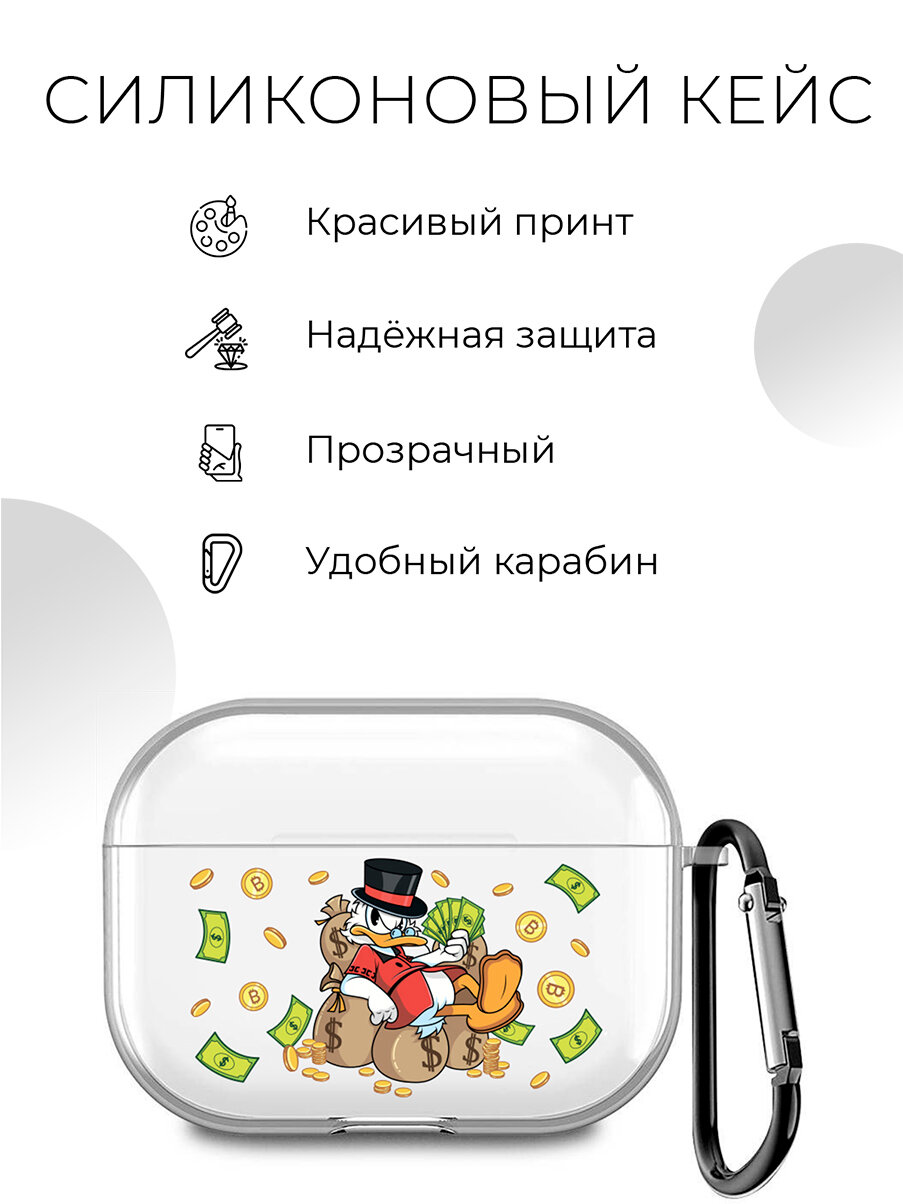 СохранитьСиликоновый прозрачный чехол для наушников Apple AirPods Pro / АирПодс Про с 3D принтом "Rich Scrooge" интересное: