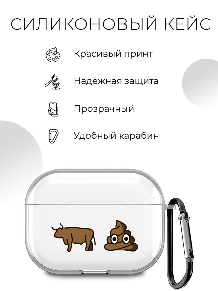 СохранитьСиликоновый прозрачный чехол для наушников Apple AirPods Pro / АирПодс Про с 3D принтом "Bull Shit" интересное: