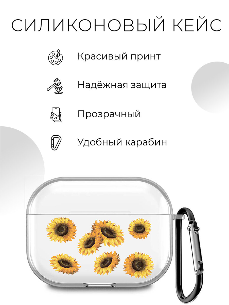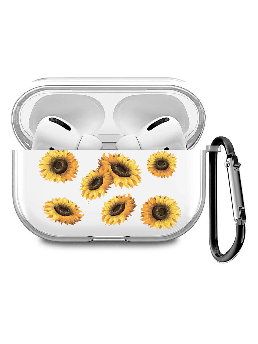 СохранитьСиликоновый прозрачный чехол для наушников Apple AirPods Pro / АирПодс Про с 3D принтом "Sunflowers" интересное: