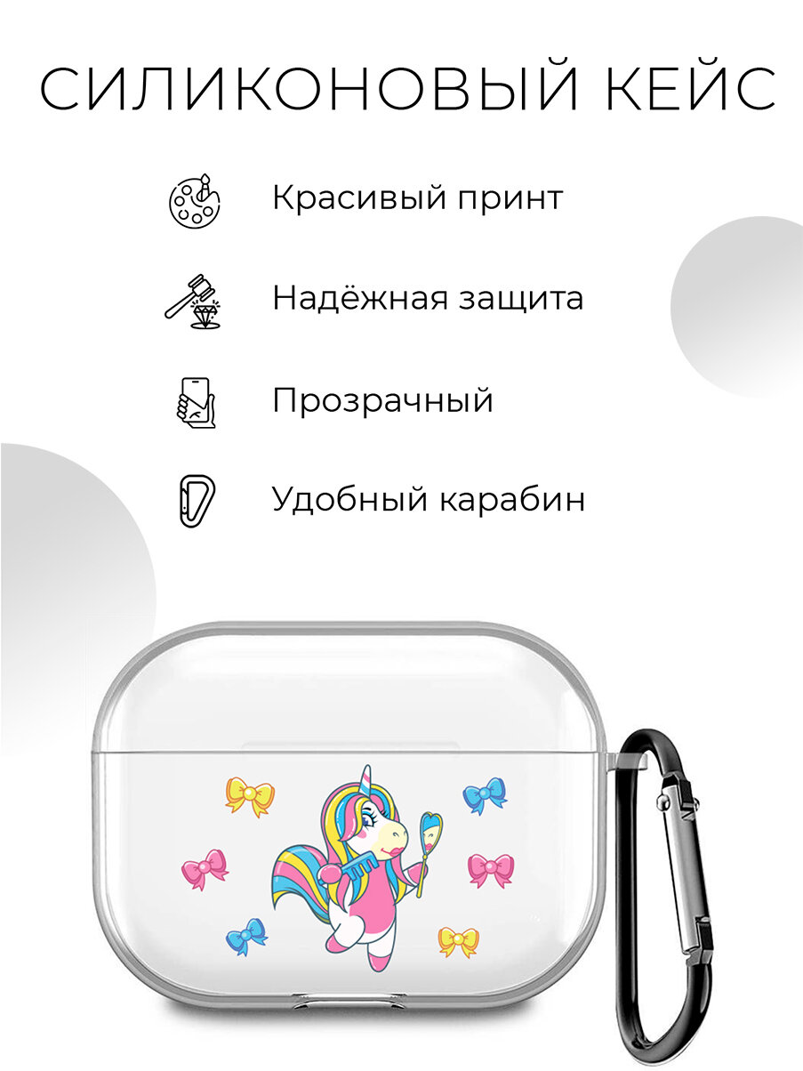 Силиконовый прозрачный чехол для наушников Apple AirPods Pro / АирПодс Про с 3D принтом "Unicorn"