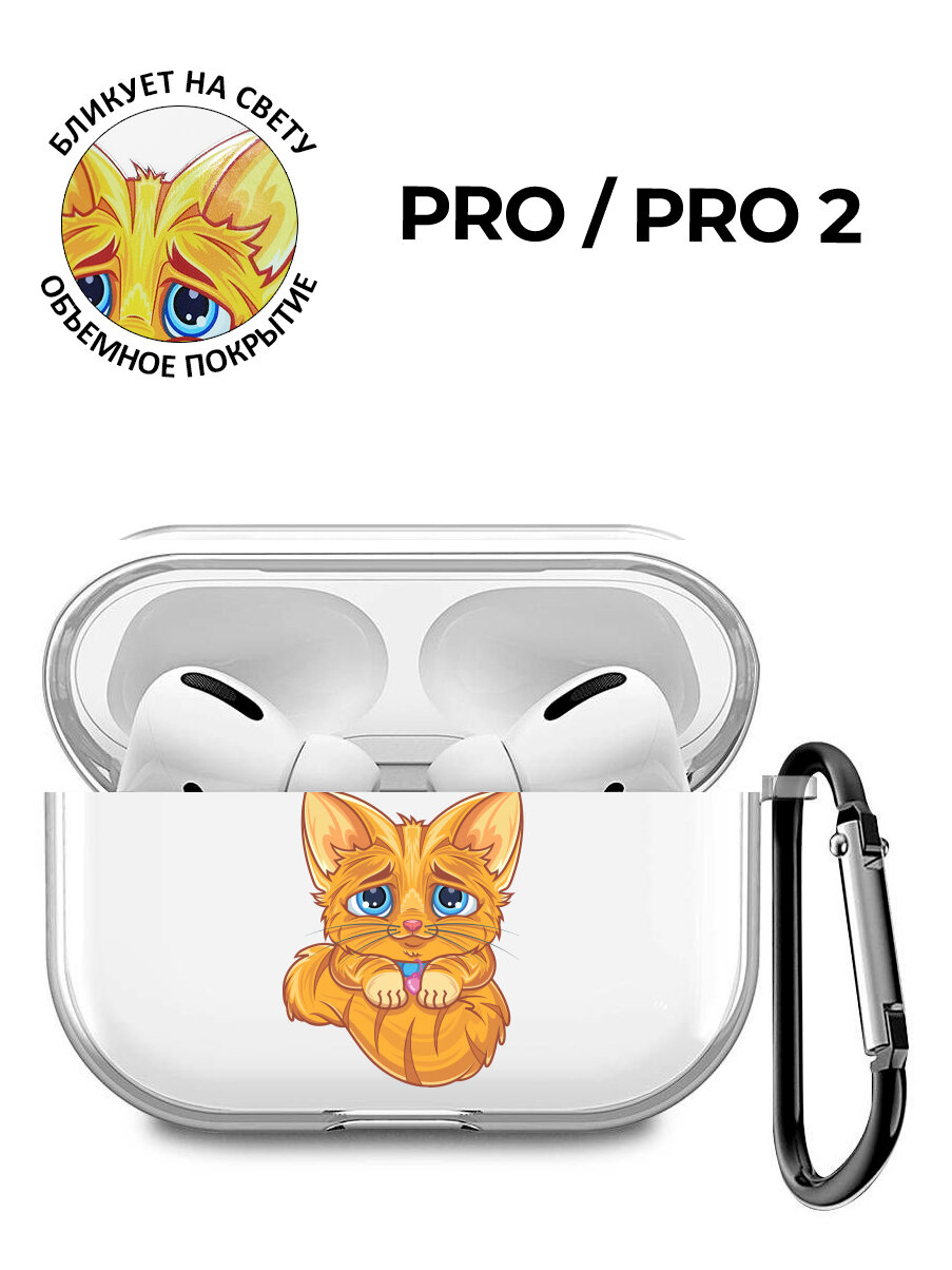 Силиконовый прозрачный чехол для наушников Apple AirPods Pro / АирПодс Про с 3D принтом "Kitty"