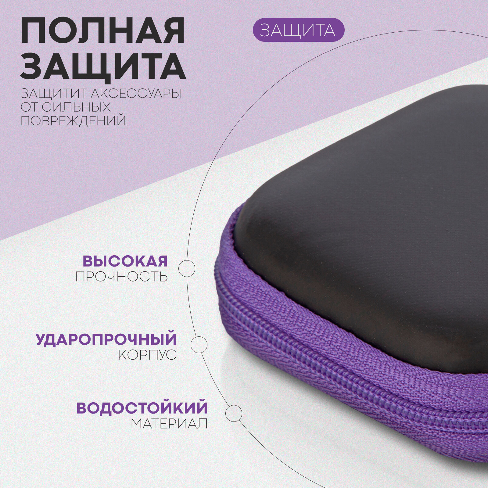 Чехол-кейс на молнии для проводных и беспроводных наушников, бренд Картофан, черно-фиолетовый интересное:
